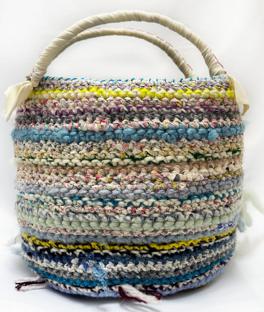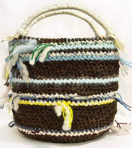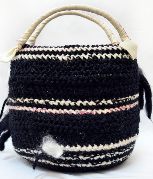 編んでいる素材によって編み目が均一でなかったり、タグの刻印、サイズも均一ではありません。