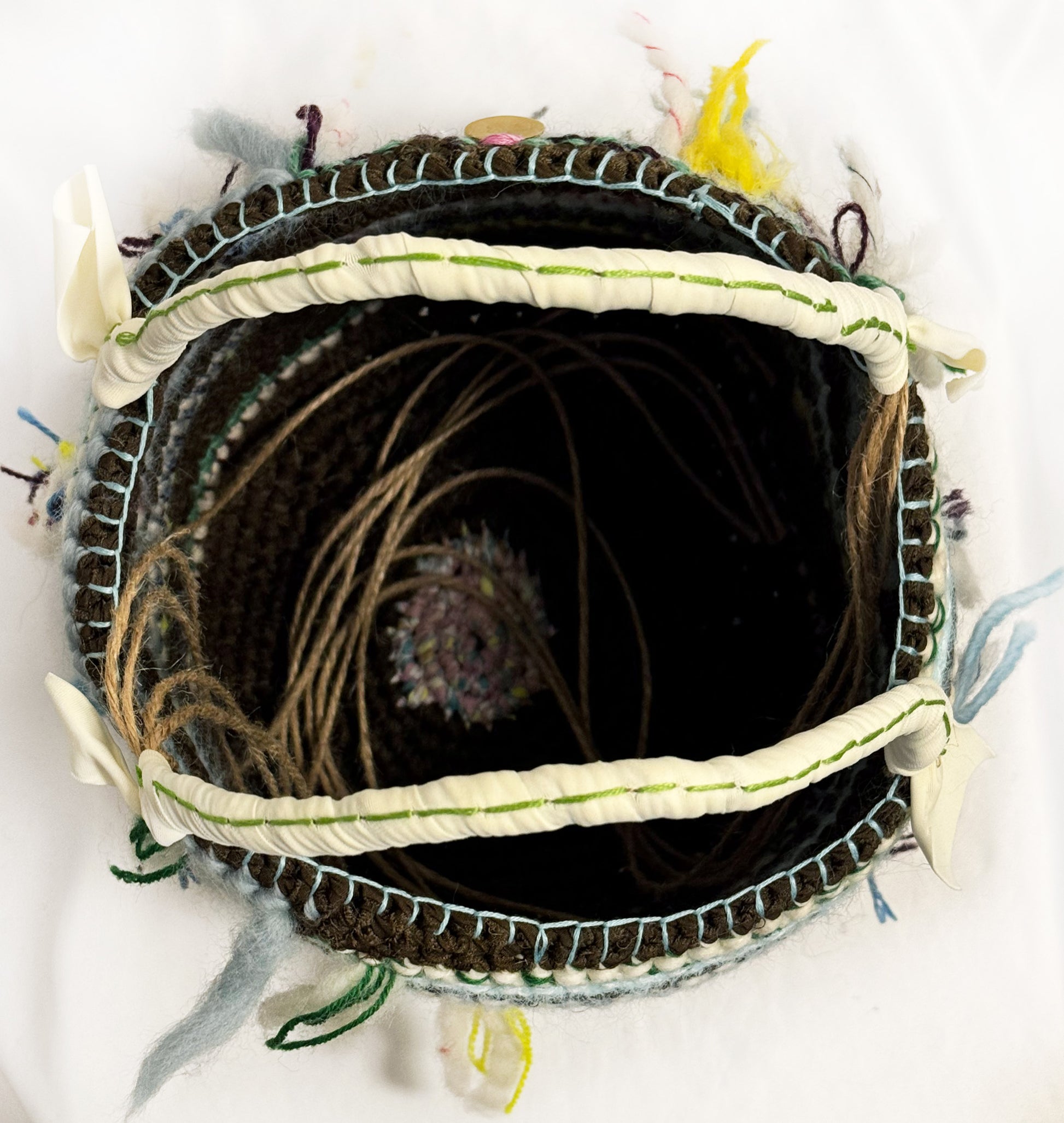 丸い底で自立する、バケツタイプのバッグ。ウールとコットンをミックスした素材で、シーズンレスに楽しめる逸品です。お財布にスマートフォン、ポーチなどはもちろん、折り畳み傘やペットボトルなど持って行きたいけれどちょっとかさばる...そんなエクストラも収納。チョコレートブラウンとブルーのコントラストが美しい逸品です。