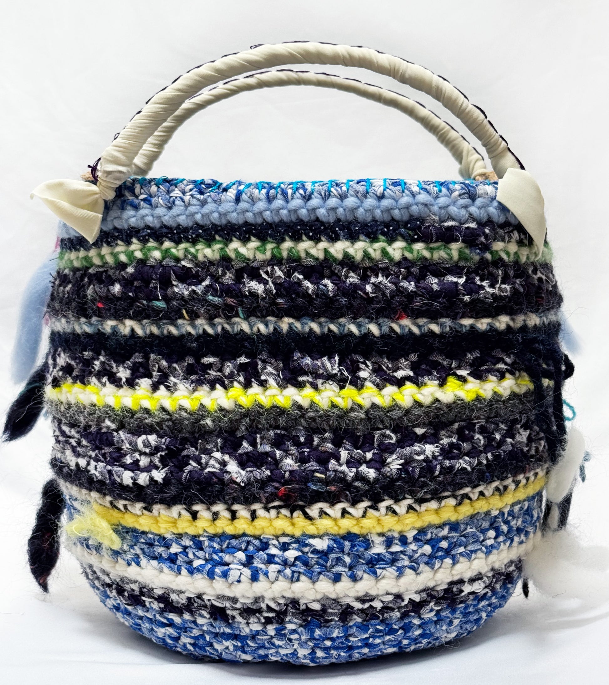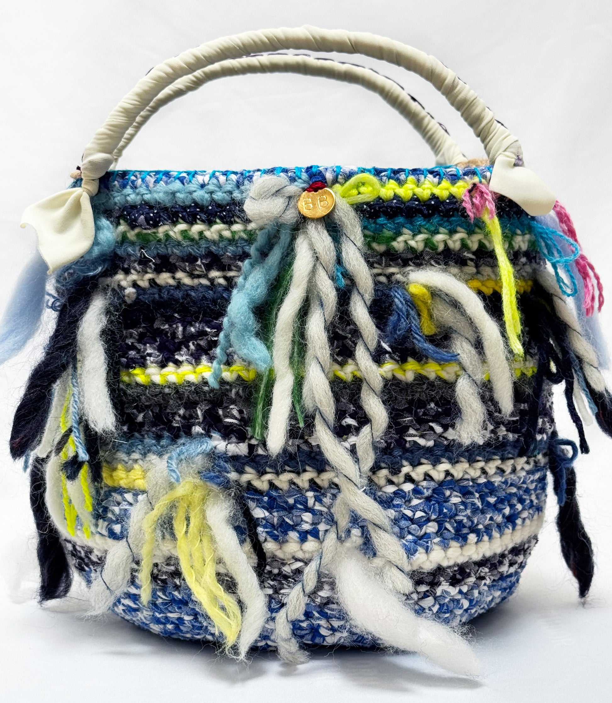 丸い底で自立する、バケツタイプのバッグ。ウールとコットンをミックスした素材で、シーズンレスに楽しめる逸品です。お財布にスマートフォン、ポーチなどはもちろん、折り畳み傘やペットボトルなど持って行きたいけれどちょっとかさばる...そんなエクストラも収納。ブルートーンのギンガムのグラデーションが美しい逸品です。