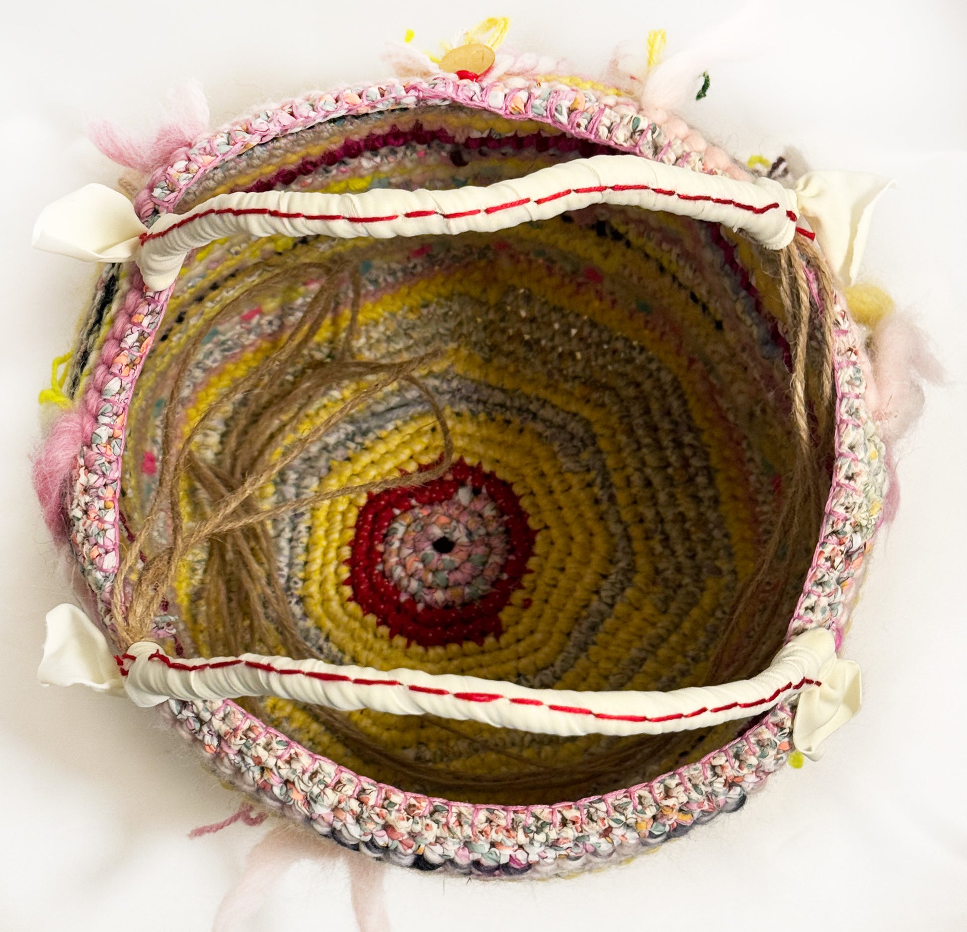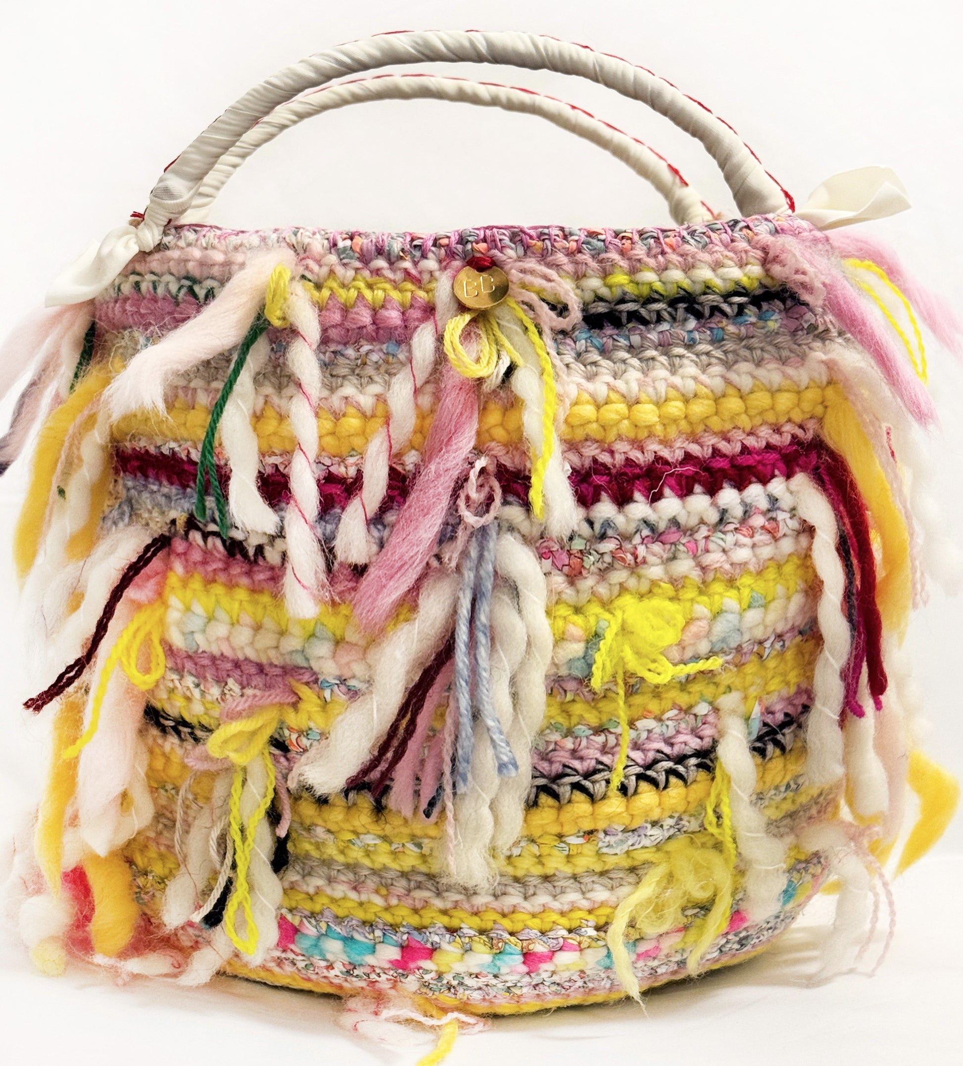 丸い底で自立する、バケツタイプのバッグ。ウールとコットンをミックスした素材ニラフィアのようなペーパーヤーンをミックスしたバスケット。シーズンレスに楽しめる逸品です。お財布にスマートフォン、ポーチなどはもちろん、折り畳み傘やペットボトルなど持って行きたいけれどちょっとかさばる...そんなエクストラも収納。マルチカラーにネオンピンクを添えてポップかつエッジを効かせました。イエローを基調にさまざま色を重ねることで、どんな装いにもマッチするデザインです。