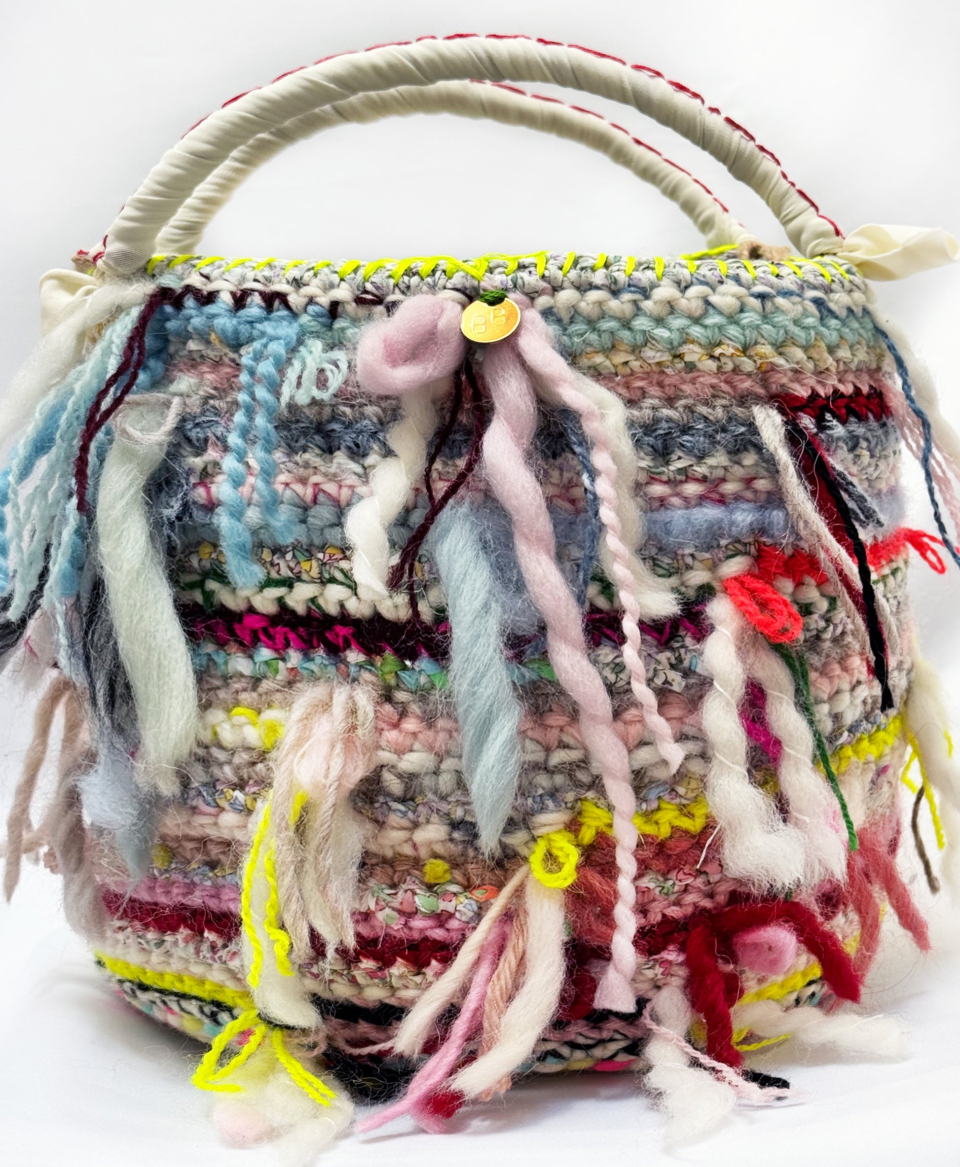 丸い底で自立する、バケツタイプのバッグ。ウールとコットンをミックスした素材で、シーズンレスに楽しめる逸品です。お財布にスマートフォン、ポーチなどはもちろん、折り畳み傘やペットボトルなど持って行きたいけれどちょっとかさばる...そんなエクストラも収納。マルチカラーがアイコニックな逸品です。